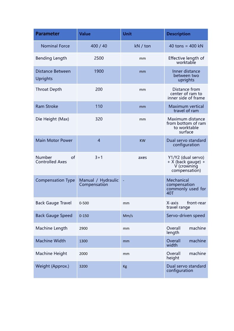 Product parameters